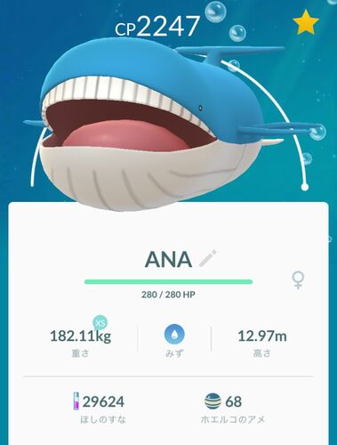 念願の、ホエルオーを手に入れたぞッ! 第3世代...ルビーサファイヤのポケモンは全く知らない。 登場するに当たって一通り調べた中で、もっとも手持ちに加えて育てたかったポケモンがホエルオーだった。 単純にクジラが好きなのと、ギャグ的にバカでかいこと…